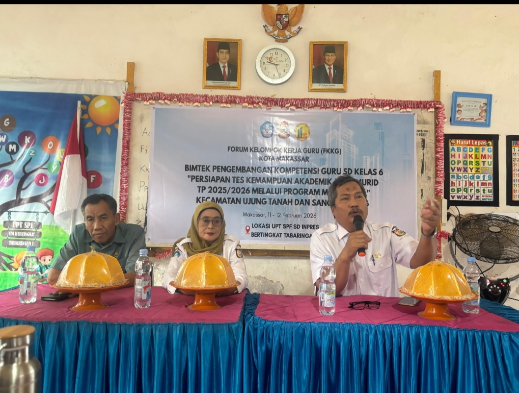 BN Online Makassar –Plt.Kepala UPT SPF SDI Bertingkat Tabaringan 1 Makassar, Srikandi Sahap, S.Pd, hadiri kegiatan Forum Kelompok Kerja Guru (FKKG) Kota Makassar menggelar Bimbingan Teknis (BIMTEK) Pengembangan Kompetensi Guru SD Kelas 6 dengan tema “Persiapan Tes Kemampuan Akademik (TKA) TP 2025/2026, Kecamatan Ujung Tanah dan Sangkarrang”. Kegiatan ini dilaksanakan pada tanggal 11–12 Februari 2026, bertempat di UPT SPF SD Inpres Bertingkat Tabaringan 1.
