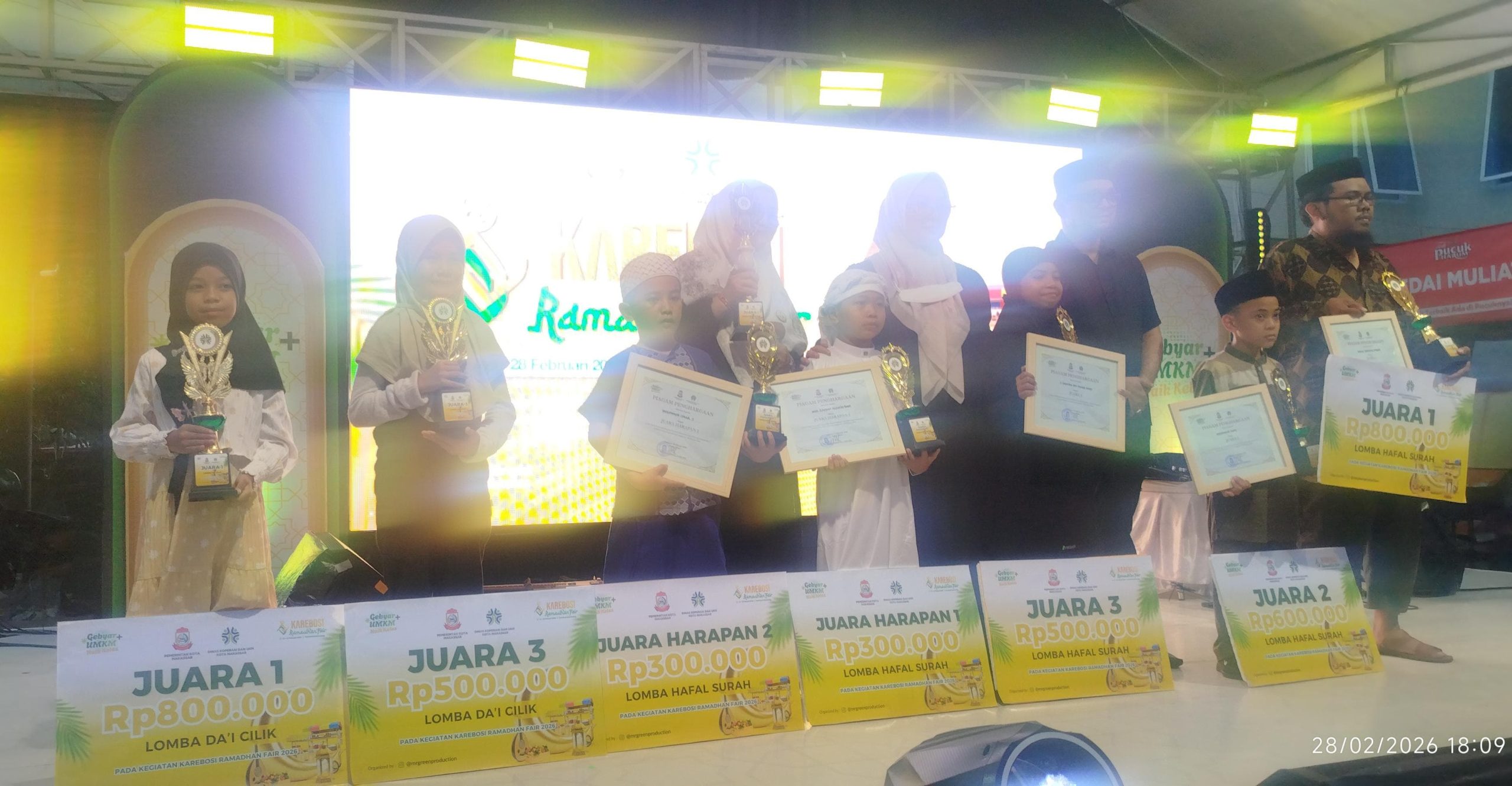 BN Online, Makassar – UPT SPF SDN Rappokalling 67/1 Makassar turut ambil bagian dalam Gebyar UMKM Karebosi Ramadhan Fair yang dirangkaikan dengan Lomba Hafal Surah tingkat Kota Makassar. Kegiatan yang berlangsung pada 23 hingga 27 Februari 2026 di Tribun Karebosi ini menjadi ajang bergengsi bagi para pelajar untuk menunjukkan kemampuan terbaiknya di bidang tahfiz Al-Qur’an.