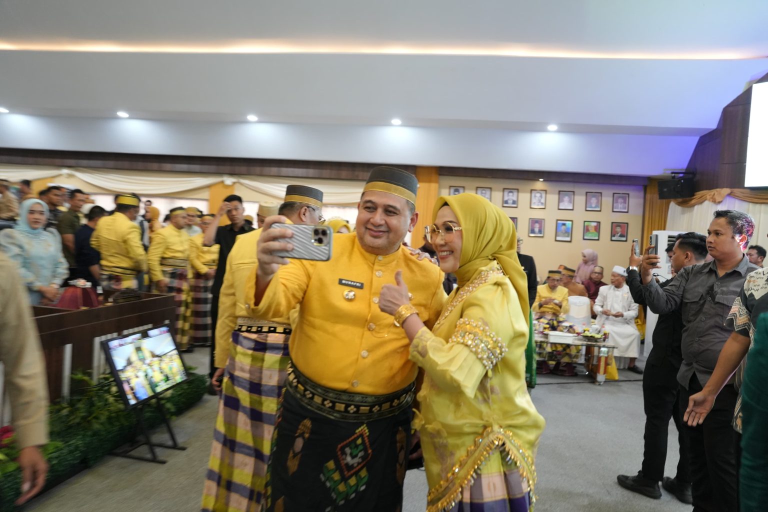 Appi tampil mengenakan jas tutu’ berwarna kuning, didampingi Ketua TP PKK Kota Makassar, Melinda Aksa, yang anggun dengan balutan baju bodo senada. Keduanya disambut hangat jajaran kepala daerah di Rumah Jabatan Bupati Barru sebelum bersama-sama menuju lokasi acara.