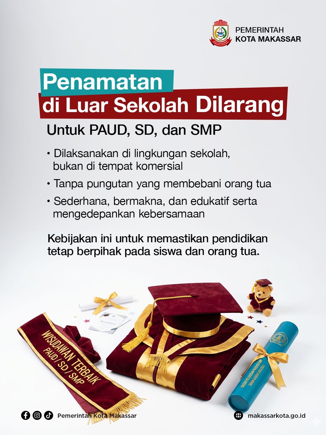 Harapan Wali Kota, dengan kebijakan ini, pendidikan di Makassar semakin berkualitas dan bebas dari praktik komersialisasi momen akademik.