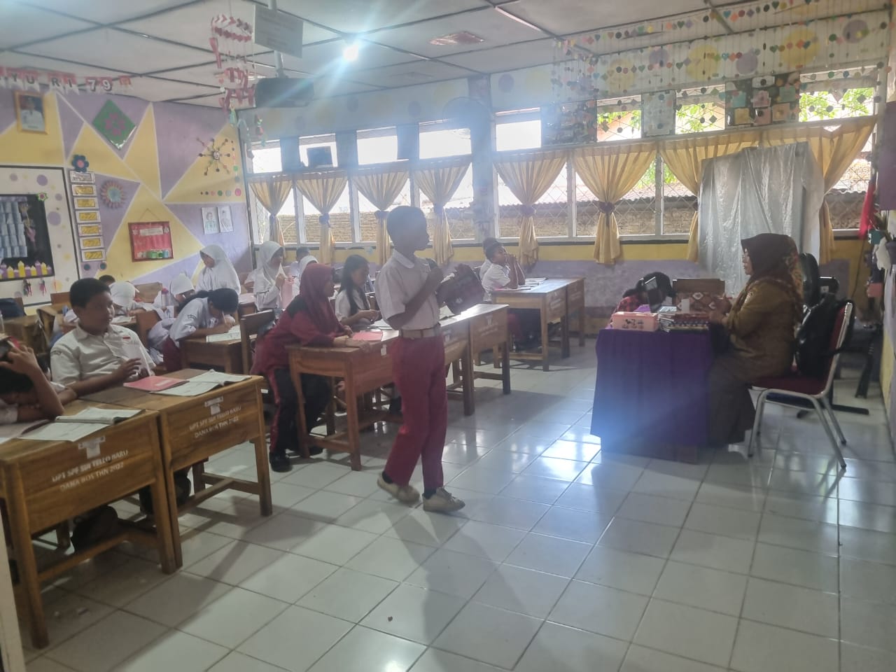 Sambungnya, meskipun baru memasuki jam kedua, antusiasme siswa terlihat tinggi. Beberapa siswa terlihat aktif bertanya tentang rumus Matematika, lalu dengan cepat beralih ke gaya belajar yang lebih rileks saat pelajaran Bahasa Inggris dimulai.