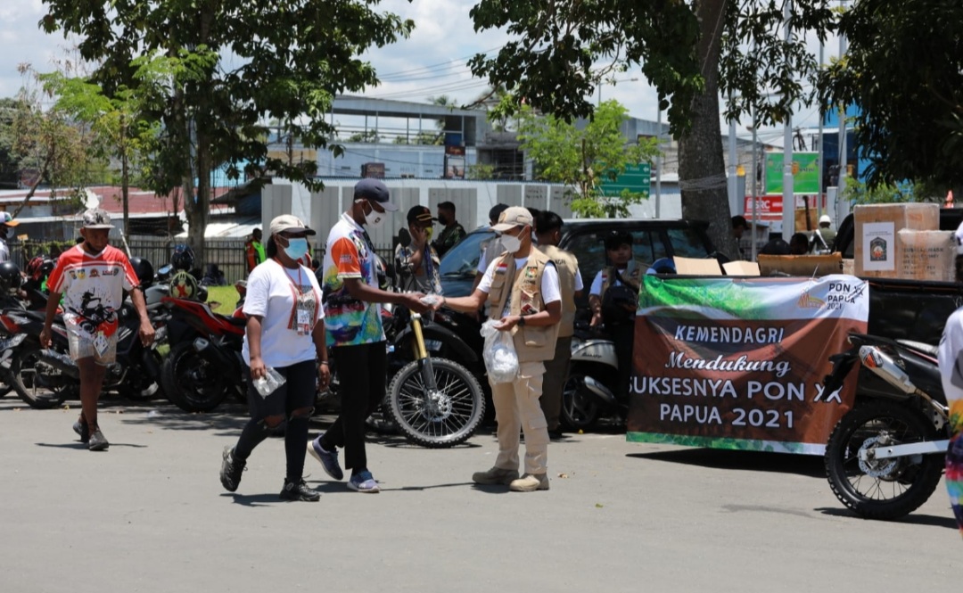 Upaya ini salah satunya dilakukan Kemendagri melalui Direktorat Jenderal Bina Administrasi Kewilayahan, dengan memasifkan gerakan pembagian masker kepada para pengunjung PON XX. Sebanyak 10.000 masker dibagikan kepada para pengunjung di venue utama, yaitu Stadion Mandala dan Stadion Lukas Enembe. Pembagian tersebut berlangsung menjelang pembukaan PON XX pada Sabtu (2/10/2021).