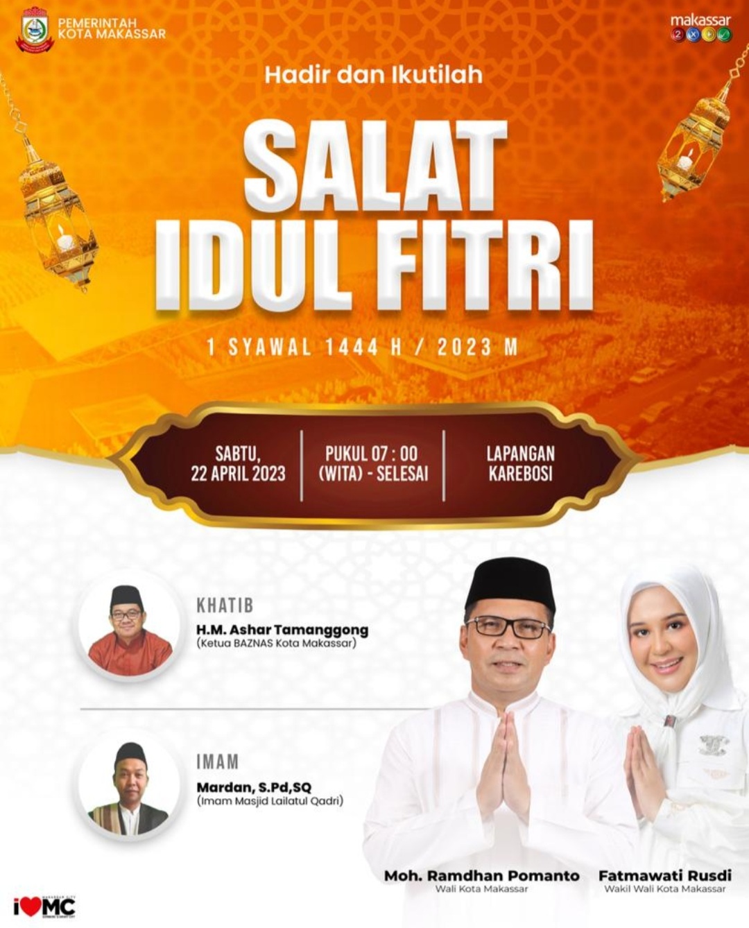Moh Syarief menyebutkan Imam Salat Ied diisi Ustad Mardan Imam Masjid Lailatul Qadri. Sedangkan khatib yang akan mengisi ceramah agama Ketua Baznas Kota Makassar Ashar Tamanggong.