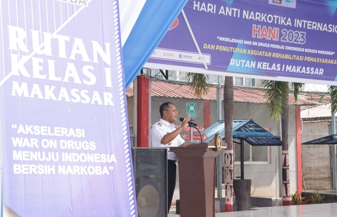 Dengan tema Akselerasi War On Drugs Menuju Indonesia Bersih Narkoba, pihaknya bersama BNN Sulsel dan Kemenkumham Sulsel menyatakan keseriusan sekaligus perang atas narkoba.