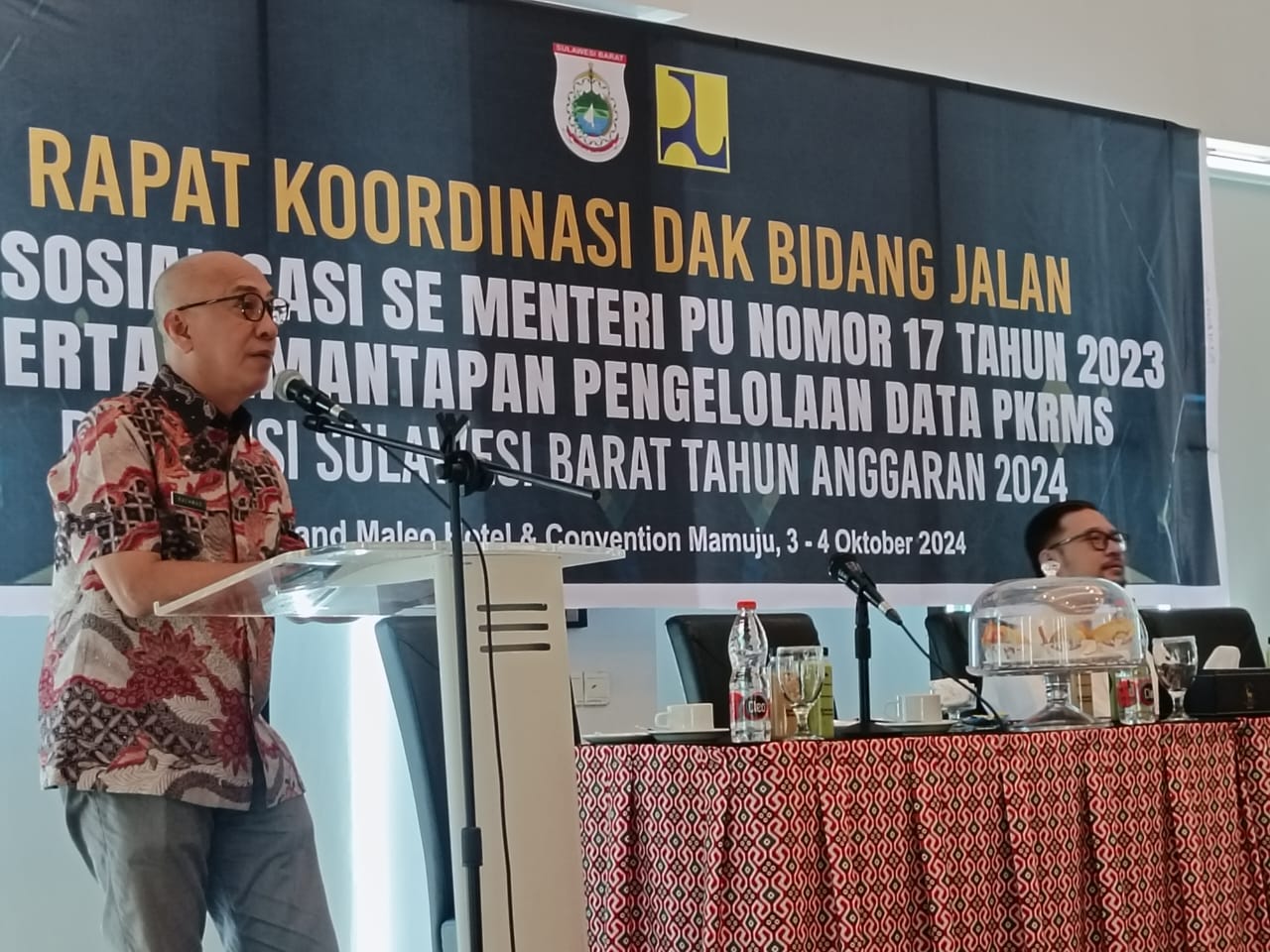 BN Online, Mamuju –Dinas Pekerjaan Umum dan Penataan Ruang (PUPR) Pemprov Sulbar menggelar Rapat Koordinasi Dak Bidang Jalan dan Sosialisasi SE Menteri PU Nomor 17 Tahun 2023 serta pemantapan pengelolaan data PMKRS Sulbar Tahun 2024, di Grand Meleo Hotel Mamuju, Kamis 3 Oktober 2024.